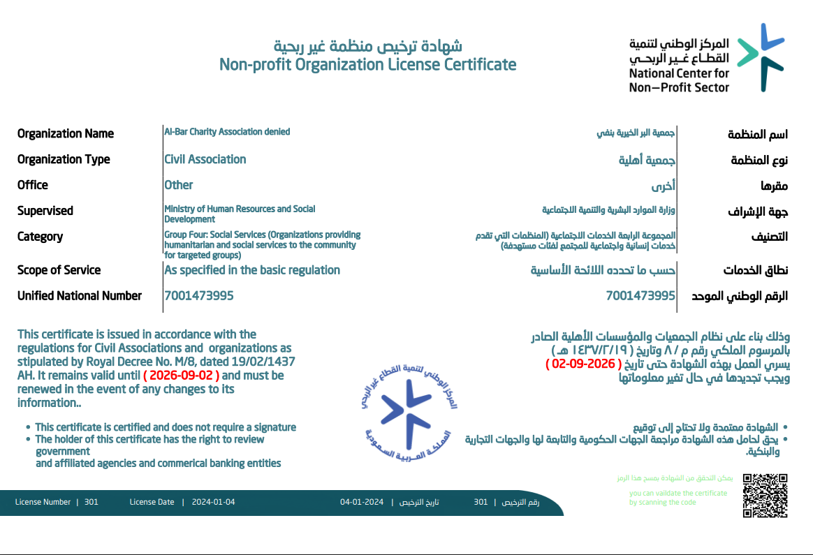 جمعية البر الأهلية بنفي، جمعية أهلية تحت إشراف المركز الوطني لتنمية القطاع غير الربحي ومسجلة برقم (301)، تهدف إلى تقديم المساعدات المادية والعينية للفئات المحتاجة،  وتحسين المستوى المعيشي للفئة المستفيدة.